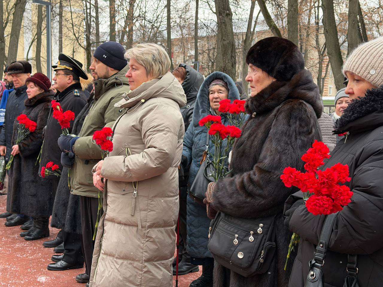 Участие в митинге приняли представители администрации округа, силовых структур, ветераны боевых действий, жители и юнармейцы школы имени Д. И. Зернова.