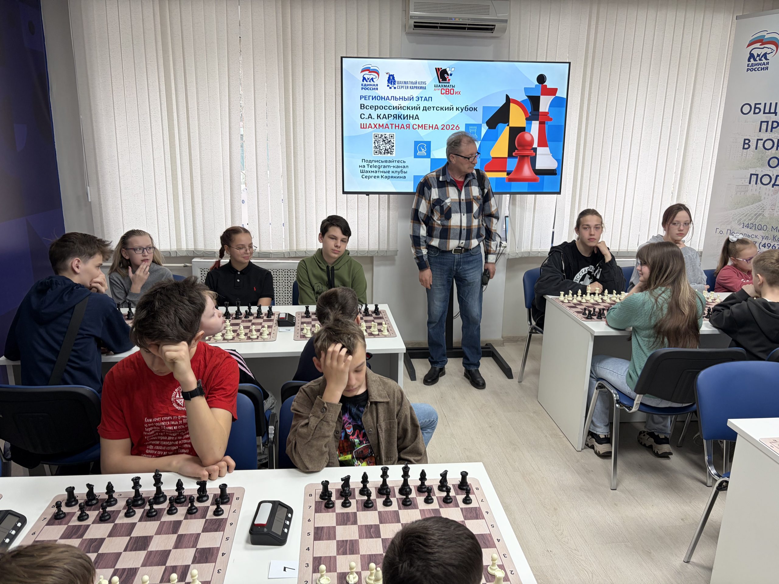 30 марта 2026г. на базе общественной приемной партии «Единая Россия» в г. Подольск, при поддержке общественной организации «Русская Община-Подольск» и ассоциации ветеранов СВО Московской области, состоялся региональный турнир по шахматам «Всероссийский кубок С.А. Карякина». Шахматная смена-2026».